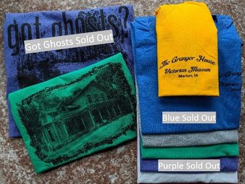 All shirts have a picture of The Granger House Victorian Museum on the back and our name on the front left chest. Available colors: grey, gold, green and white.